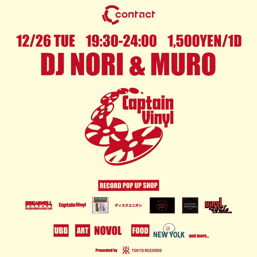 世界でも有数のレコード・パラダイスとして知られる東京。この街でKing Of Diggin’の異名を持つDJ MUROと、DJ活動38年を数えるベテラン中のベテランDJ NORIの2人が、それぞれの膨大なコレクションから主に7インチを持ち寄ってプレイする。ソウル、ディスコ、ガラージ・クラシックス、ハウスに限らず、和モノやポップスなども飛び出すジャンルに縛られない自由なセレクトは平日のカジュアルなパーティーならではかもしれない。会場には毎回レコードの販売コーナーとフード・コーナーが用意され、マニアから仕事帰りに一杯という人まで、音楽ファンなら誰でも大歓迎。フレンドリーで居心地のいい雰囲気が人気となり、毎回大盛況!