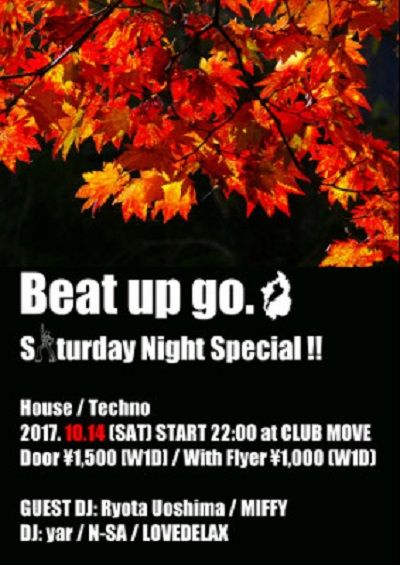 今回は大阪エリアを主軸に活躍中のRyota Uoshima、MIFFYを迎えての開催です。Beat up go.の音と夜を是非体感して下さい。