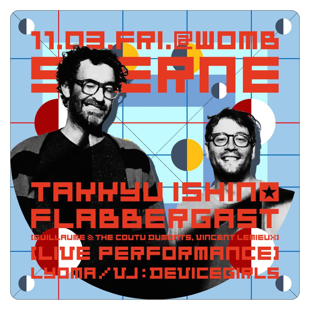 電気グルーヴ、石野卓球レジデントパーティー STERNE。スペシャルゲストは、GUILLAUME & THE COUTU DUMONTS と VINCENT LEMIEUX によるユニット FLABBERGAST が登場!メンバーの VINCENT LEMIEUX はモントリオールのエレクトロニックミュージックシーンのドンとして知られ、DJ / レコードディーラー / MUTEK のプログラマー / レーベル MUSIQUE RISQUÉE の共同設立者 / プロデューサーと様々な顔を持つ真の音楽フリークであり、もう1人の GUILLAUME COUTU DUMONTS は MUSIQUE RISQUÉE、MEANDER、CIRCUS COMPANY 等のレーベルからオリジナルトラックやリミックスのリリースを重ね、CHIC MINIATURE、EGG など他プロジェクトのメンバーとしても活躍しているという、シーンの重鎮同士が組んだウルトラユニットである。2人は10年以上共に活動しているが、2015年に初となる12インチを CIRCUS COMPANY からリリースしたばかり。DJ とライブ演奏を組み合わせ、BACK TO BACK により互いにカオスを作り出す即興的なパフォーマンスがエレクトロニックミュージックシーンの注目を一挙に集めている。