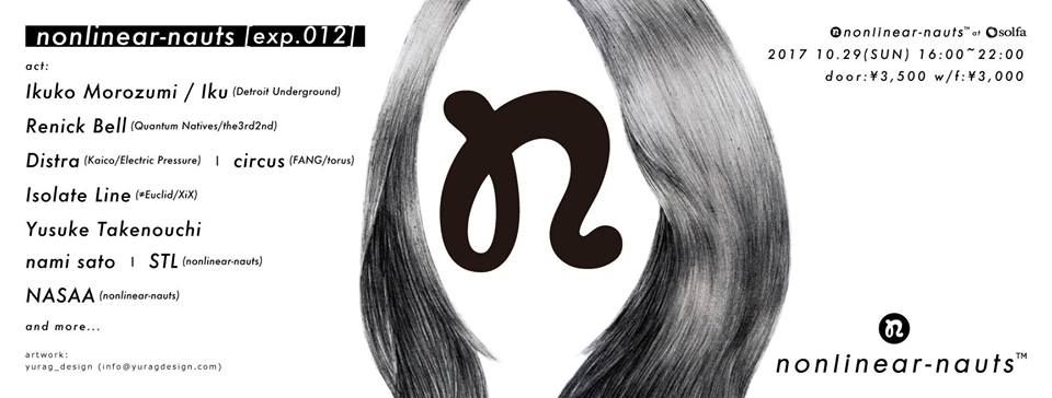 nonlinear-nauts [exp.012]となる今回は、Richard DevineやJimmy Edgarなどの数々のビックネームがリリースを行ってる名門レーベル<Detroit Underground>より最新アルバム「Fundamental Significance」をリリースした《Ikuko Morozumi / Iku》がライブパフォーマンスを披露する他、今年夏に独ベルリンで開催された電子音楽の祭典<Berlin Atonal 2017>への出演を果たし益々注目を浴びている《Renick Bell》、ギリシャの首都アテネを拠点とする音楽レーベルElectric Pressureからのリリースも記憶に新しい《Distra》、厳選されたトラックで編成されるDJに定評があるtorus主宰の《circus》、六本木アートナイトの期間中に行われたDE/construct: Updating Modernismにも出演するなど尖端音楽シーンにおいて最も注目すべき存在の一人である《Isolate Line》、海外ラジオへの楽曲提供等、幅広いシーンで活動する《Yusuke Takenouchi》、仙台を拠点に電子音楽家として活動するフィメールアーティスト《nami sato》、nonlinear-nautsが送り出すサウンドアーティスト《STL》、nonlinear-nautsを主催する《NASAA》によるインスタレーションの他、確かなプログラミング技術によりサウンドを的確にヴィジュアライズする《naoto bando》がVJとして参加するなど、多方面で活動するDJやライブアーティストが多数出演。また、nonlinear-nautsがプロデュースする《STANDbyN》によるフード、物販も充実。