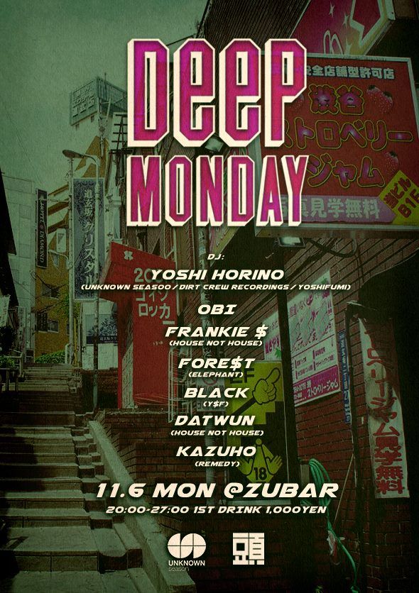 - DJ: Yoshi Horino(UNKNOWN season), Obi, Frankie $(House Not House Records), Fore$t(Elephant), Black(Y$F), DATWUN(House Not House Records), Kazuho(Remedy)