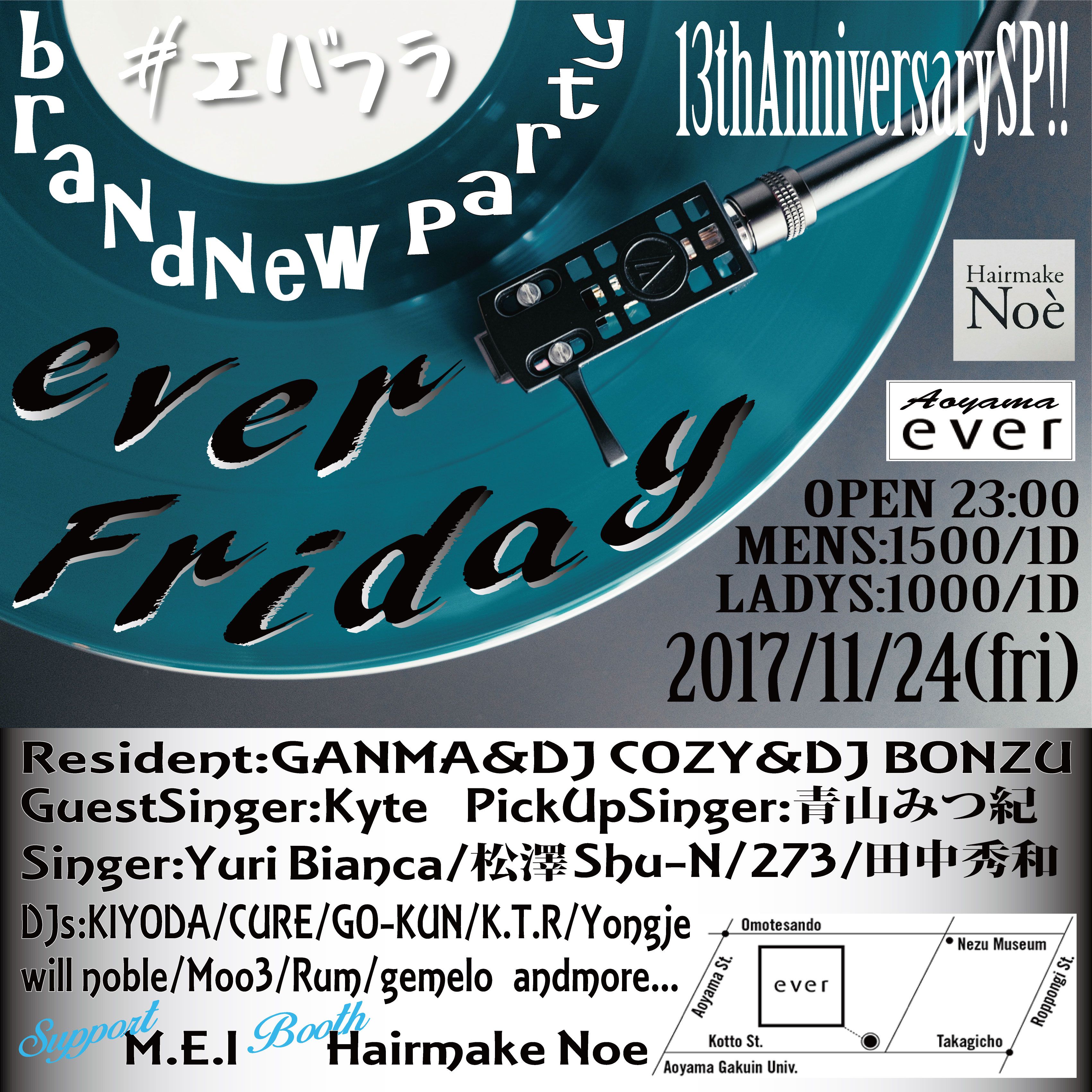 9月に行われたリニューアルパーティーを皮切りに、青山everの新たな金曜日を良質な音楽で煌びやかな空間を彩る #エバフラ