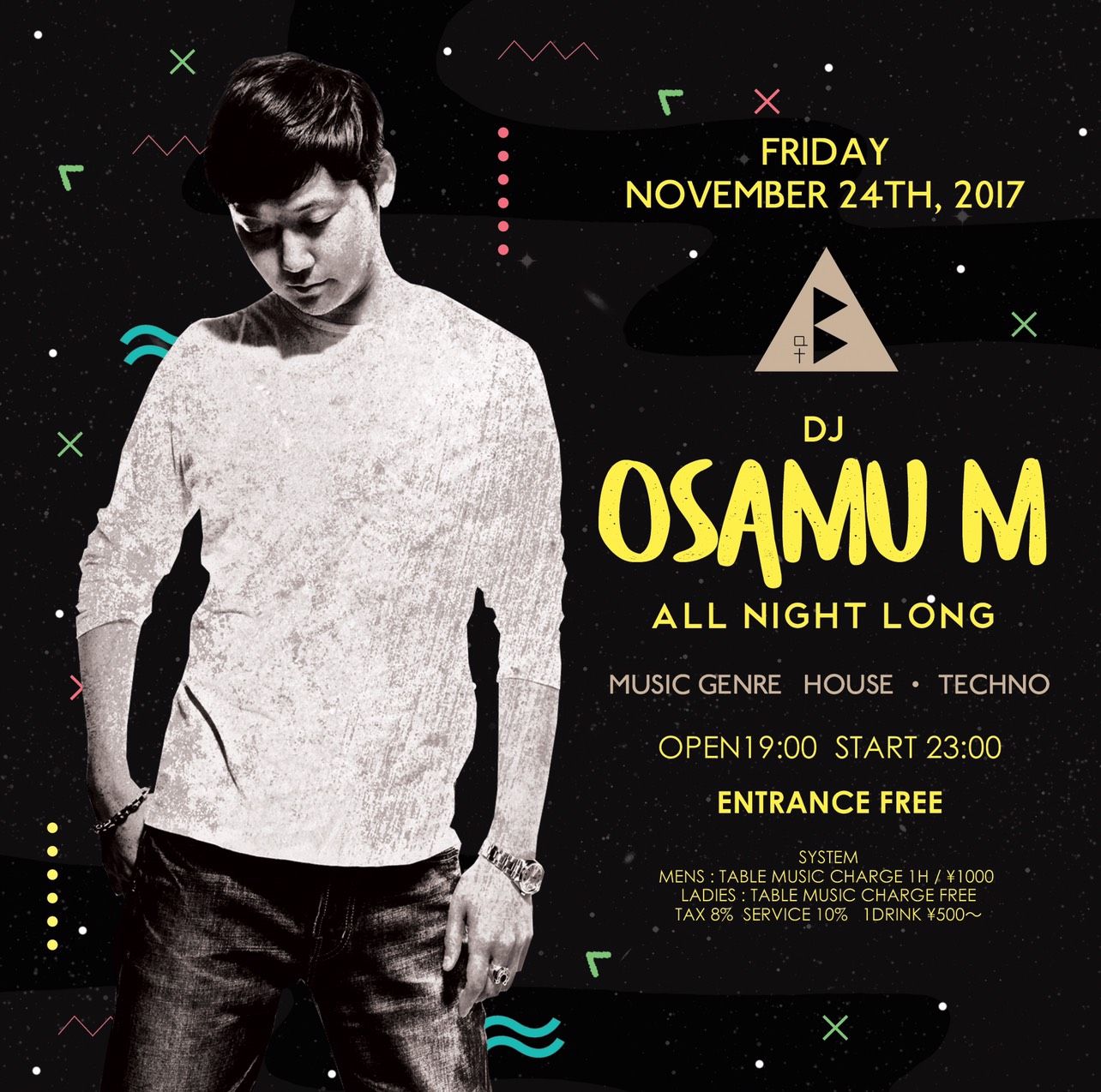 この度、成田"at B"にOSAMU Mをお招きし、"ALL NIGHT LONG PARTY"の開催が決定致しました!