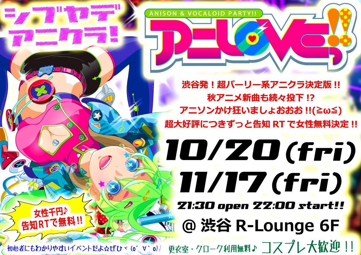 DJ & VJ : シーザー / 白石稔 / あぷりこっと✳︎ / MONICO / 星野ちろる / 保坂☆ / ゆみり/ シンキ / いっちー