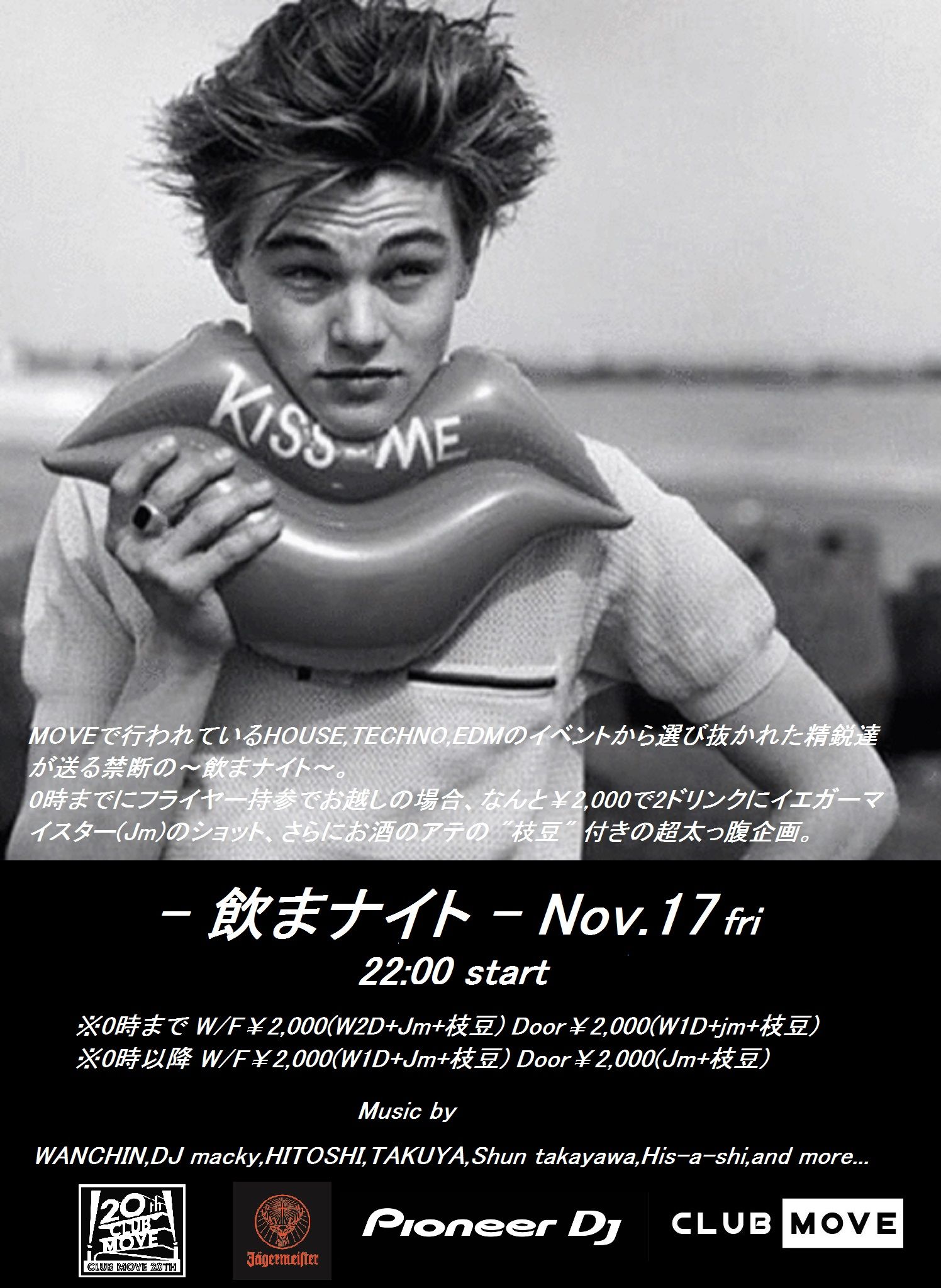 MOVEで行われているHOUSE,TECHNO,EDMのイベントから選び抜かれた精鋭達が送る禁断の~飲まナイト~。
