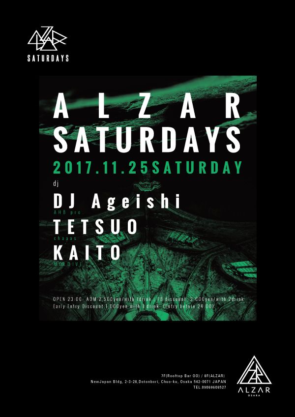 大阪を拠点に活動する選び抜いたDJ陣らを迎え入れ、国内をはじめとした各地に点在する優れたアーティストを共演者として招聘し開催するALZAR Saturdays。