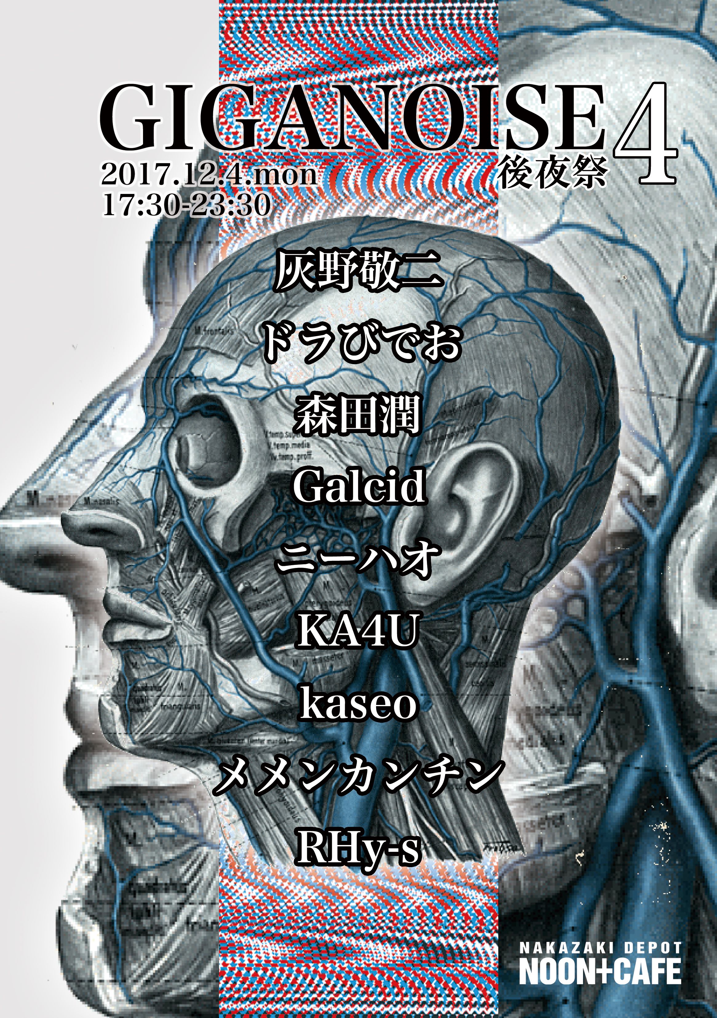 “ドラびでお”こと、一楽儀光氏によるノイズフェスティバル”GIGANOISE”!!!世界中で活躍するあまりにも個性的かつ独創的なアーティスト達の祭典。そしてまだ見ぬ素晴らしい才能の発掘の場としても機能しているGIGANOISE。 出演は灰野敬二、山本精一、宇川直宏、テンテンコ、galcid、柴田聡子他厳選された総勢約50アーティスト達が出演し、前夜祭(岡山)、本祭(高松)、後夜祭(大阪NOON)の3本立てでお送りするノイズの祭典!!