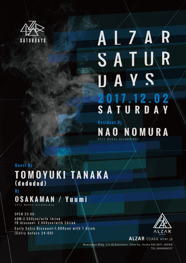 国内テクノレーベルBASS WORKS RECORDINGSを運営するNAO NOMURAが放つ毎月第1週目のALZAR SATURDAYS。