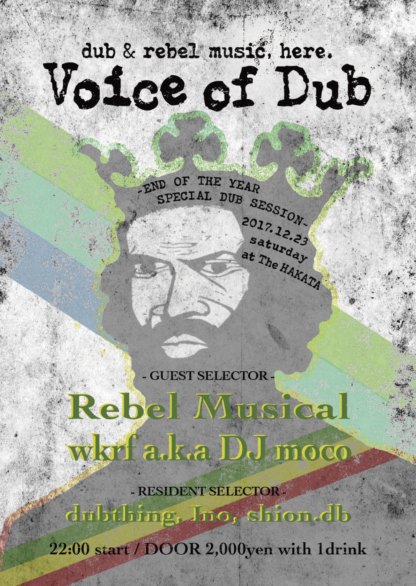 Vol.28は年末ダブ納め「End of The Year Special Dub Session」ということで、Rebel Musical、そしてwkrf a.k.a DJ moco(from Pioneer Route)の2ゲストと共に、2017年の最終回を締めくくります。
