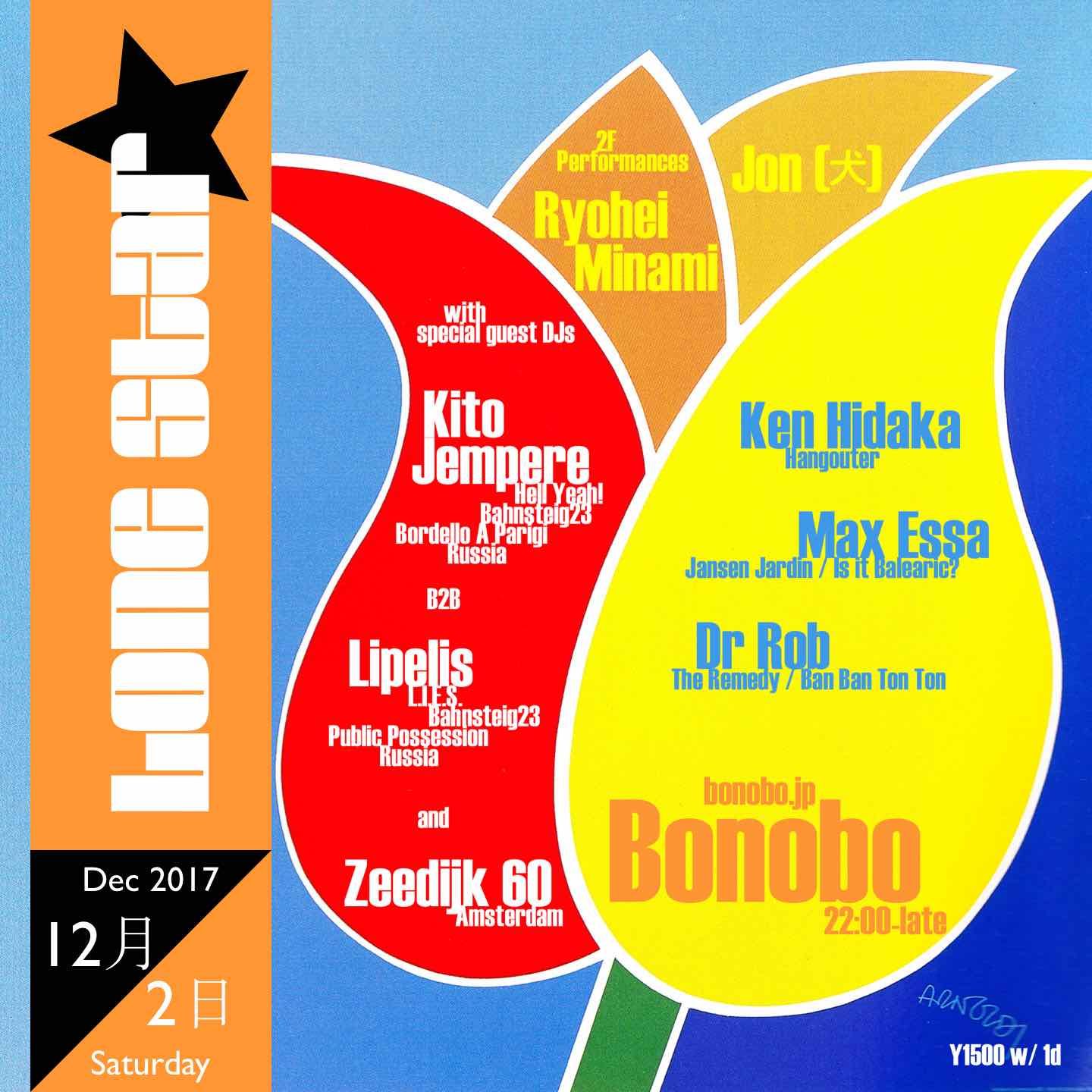 Kito Jempereと共に来日しているL.I.E.S.、Bahnsteig23、Public PossessionからリリースしているDJ、Lilepis、そして先日ボノボ主催のせいさんがアムストルダムのダンス・ミュージック・フェスティバル、ADEに呼ばれ、この街の重鎮たちと交流を図り、彼らを今回のパーティにも招き、アムストルダムを代表するDJ、Zeedijk 60もゲストDJとして歓迎します!2階に、Ryohei MinamiとJon (犬)のパフォーマンスも行われ、今年を締めくるるLone Starのパーティにしたいと思います!