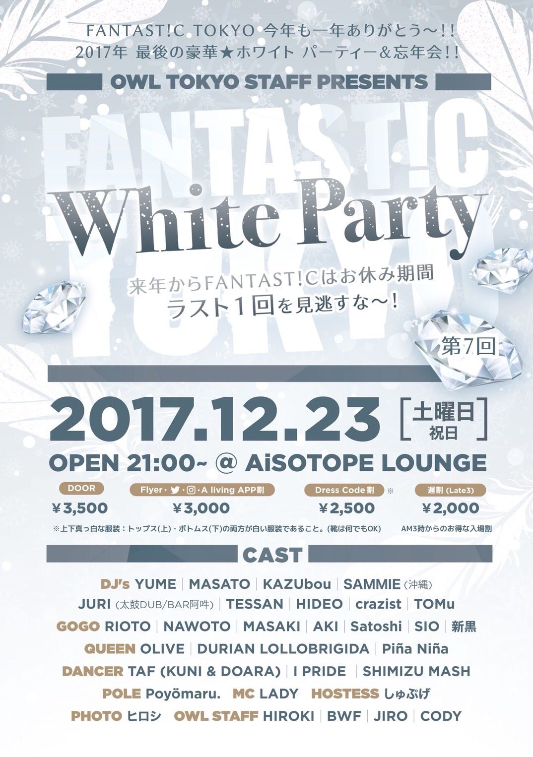 今回のテーマは〝 White party 〟&〝 FANTAST!C 忘年会 〟
