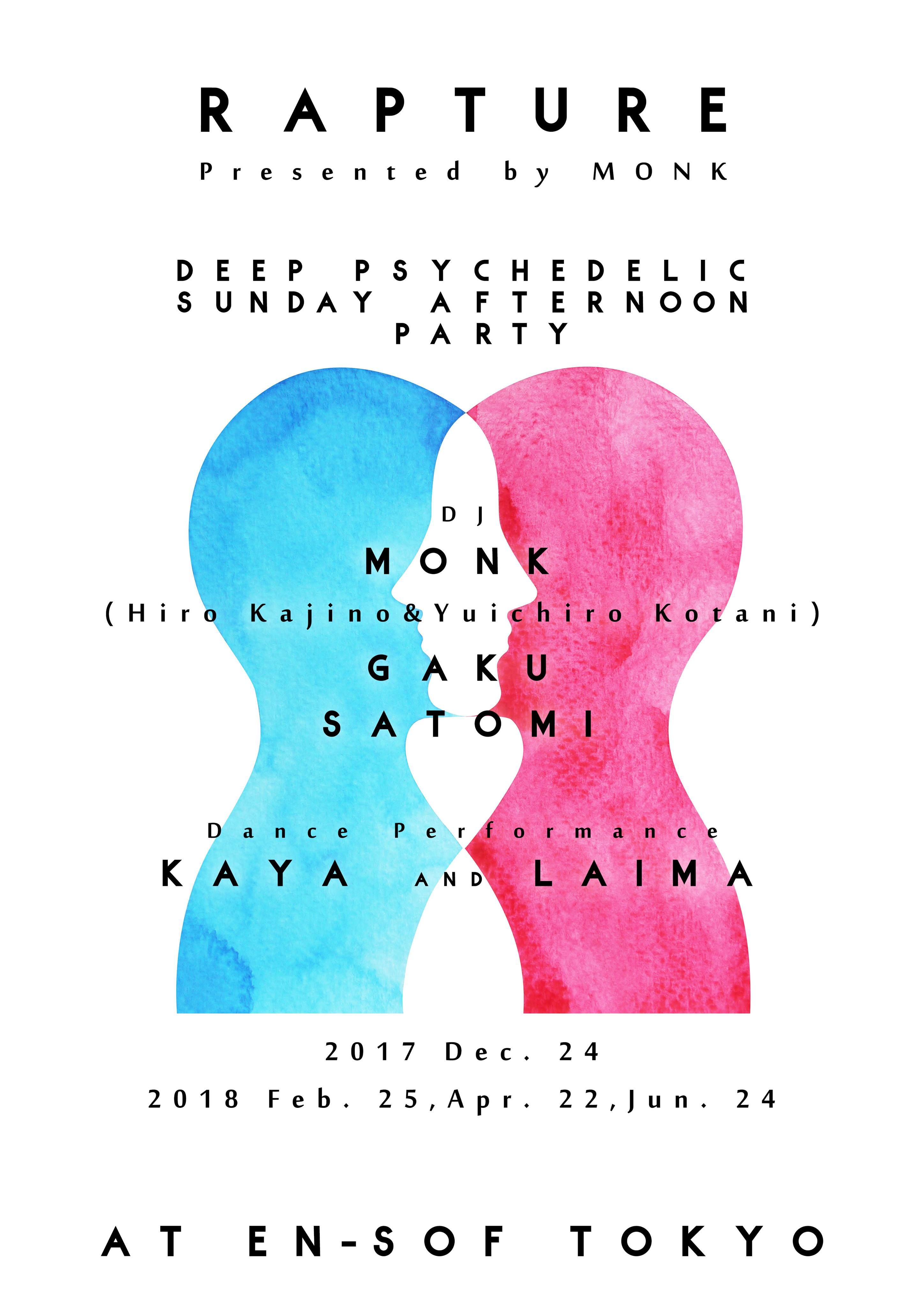 日本のクラブシーン創世記から今に至るまで、ダンスミュージックの最先端を走り続けてきたHiro Kajino、世界各地のレーベルからリリースを続け高い評価を得るtrigことYuichiro Kotani、音がもたらす意識変容の可能性を探り、音楽・ヨガ・科学の統合を目指すGaku、ダンスを愛しこの地球で共に生きるシスターとして、ダンスを通してそれぞれの愛を探求するKaya and Laimaと多彩なメンバーでDeep、そしてPsychedelicな日曜の夜を演出する。