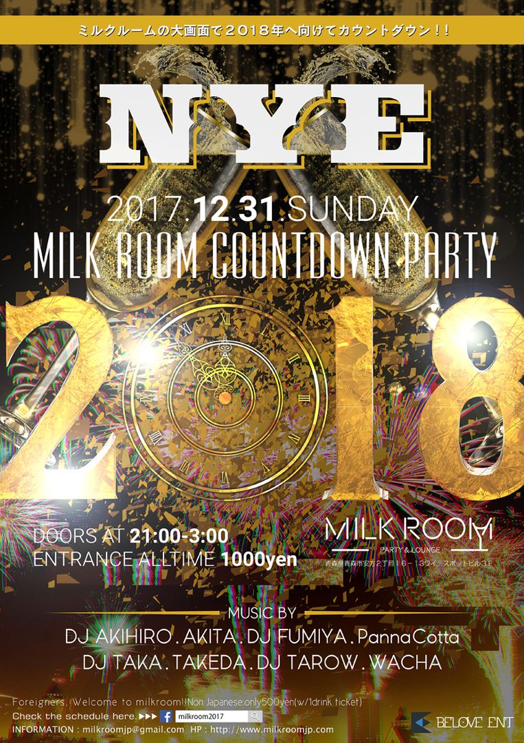 2018年をミルクルームの大画面でカウントダウンして迎えよう!