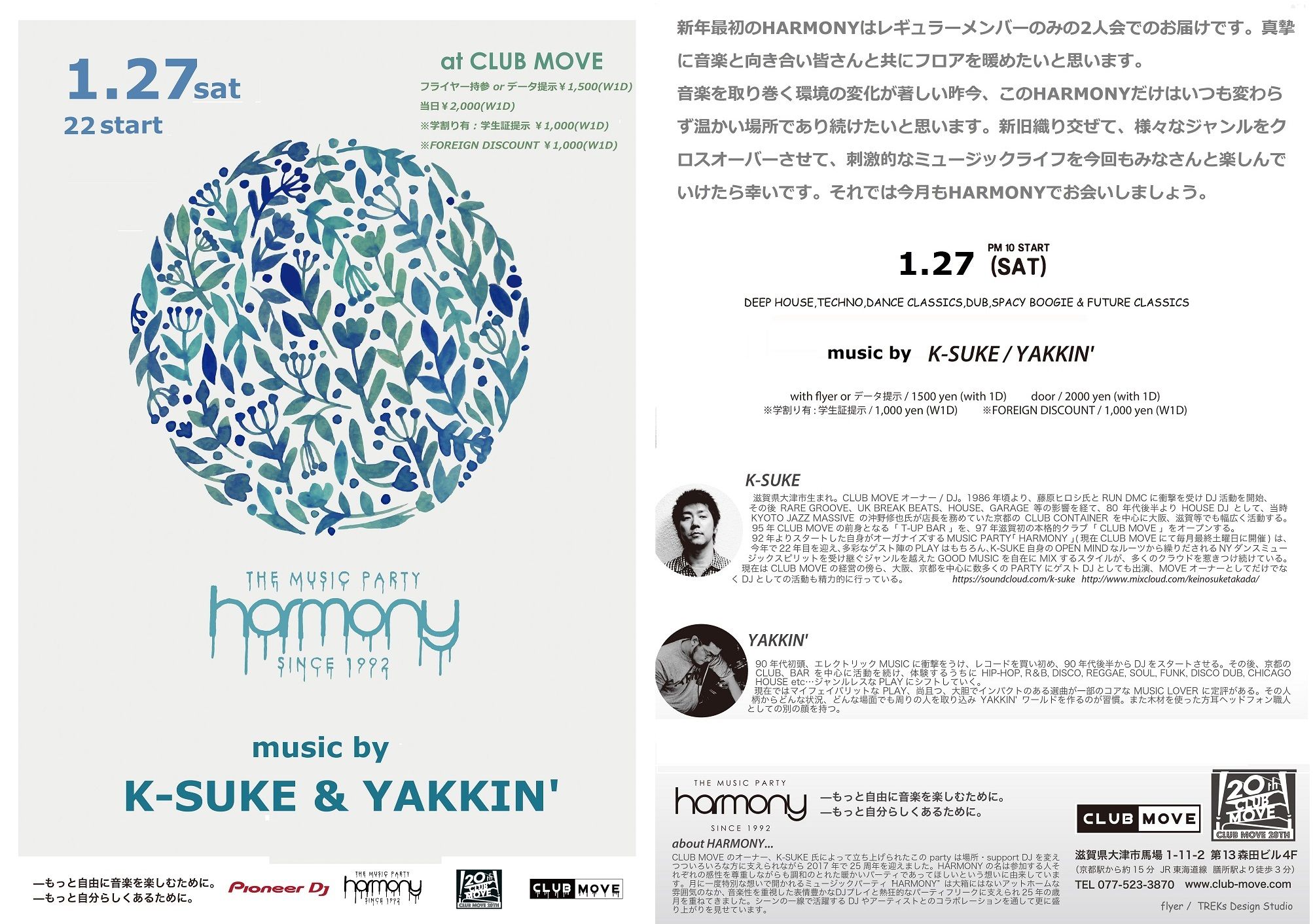 新年最初のHARMONYはレギュラーメンバーのみの2人会でのお届けです。真摯に音楽と向き合い皆さんと共にフロアを暖めたいと思います。