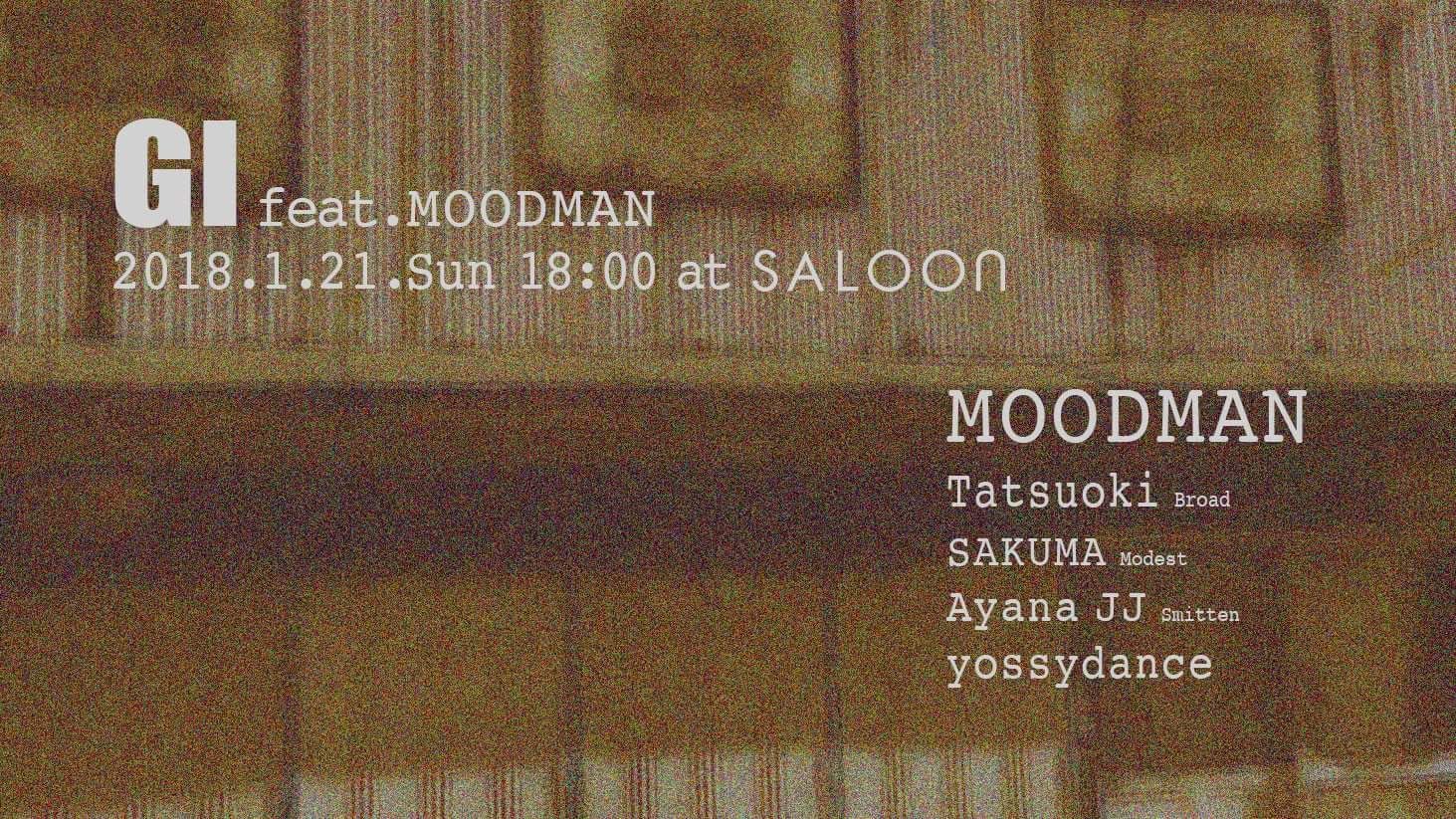 2018.01 21 JAN GI feat. MOODMAN HOUSE TECHNO 0 Shares Facebook Twitter google Line DATE: 2018-01-21 SUN OPEN: 18:00 VENUE: PRICE: ¥1,000 LINE UP: Guest: MOODMAN DJ: Tatsuoki (Broad) SAKUMA (Modest) Ayana JJ (Smitten) yossydance Food: KAMO