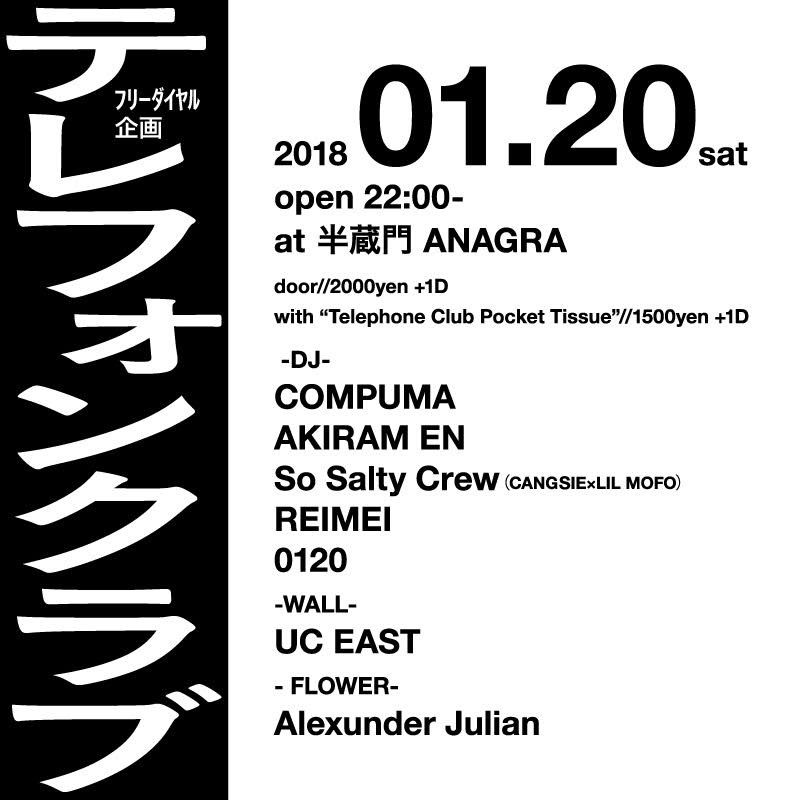 2017年に結成されたエクスペリメンタルユニット0120(フリーダイヤルと読む)の初企画が半蔵門の地下にあるANAGRAで行われる。DJ陣には0120が尊敬してやまない、COMPUMA、AKIRAM EN、CHANGSIE×LIL MOFOの2人で結成されたSo Salty Crew、REIMEIといった5人を迎える。