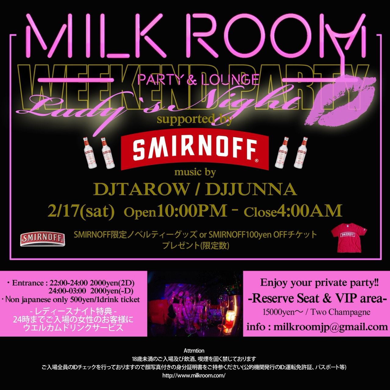 - ENTRANCE 22:00-24:00 2000yen(2D) 24:00-4:00 2000yen