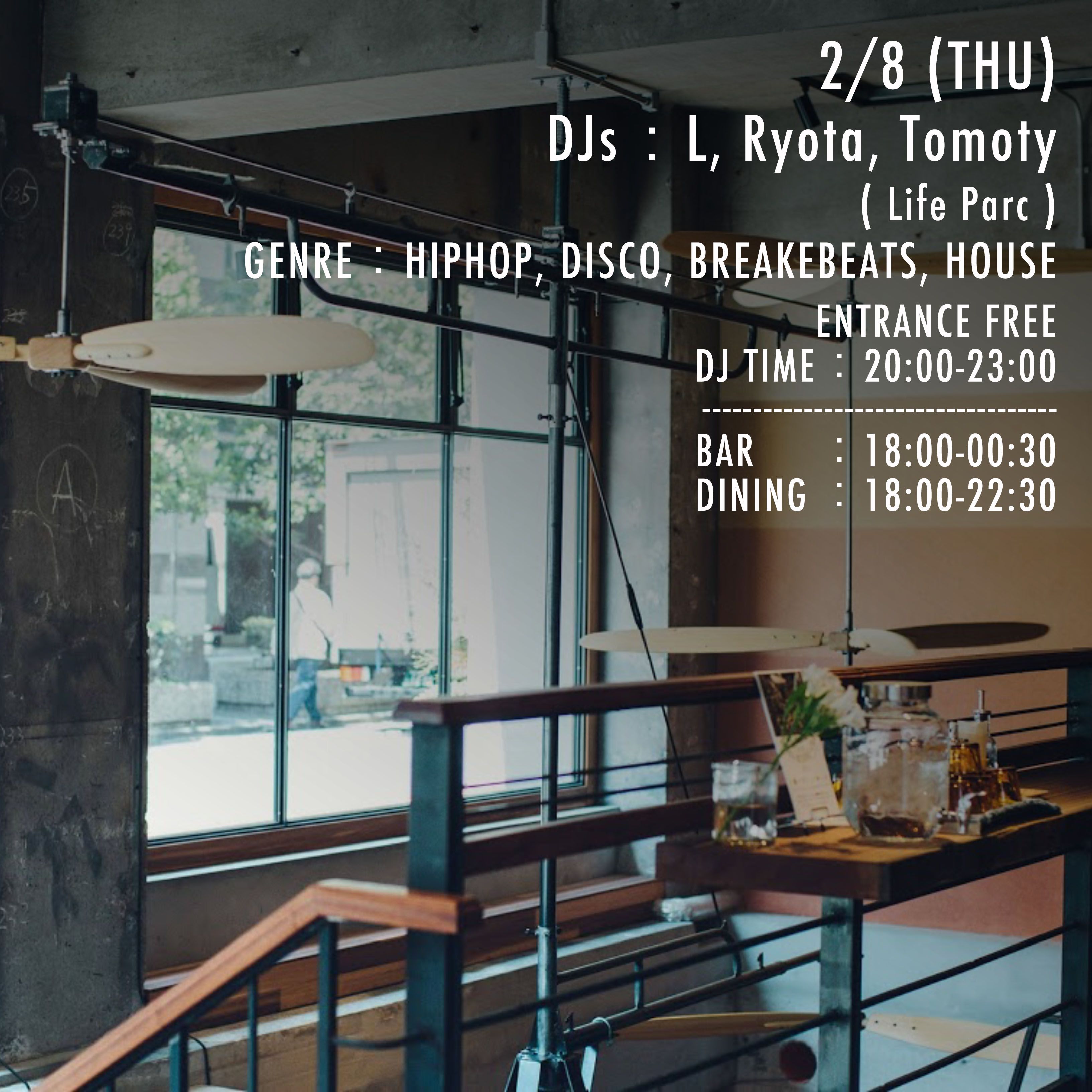 2018.02 08 FEB Weekend Lounge DJs DISCO HOUSE JAZZ HIPHOP 0 Shares Facebook Twitter google Line DATE: 2018-02-08 THU OPEN: 20:00 VENUE: PRICE: ENTRANCE FREE LINE UP: L, Ryota, Tomoty (SPEAKEASY / Life Parc) 2/8 (THU) DJ: L, Ryota, Tomoty (SPEAKEASY / Life Parc) GENRE:HIPHOP, HOUSE, DISCO, BREAKEBEATS SPEAKEASY TYO:https://m.facebook.com/SpeakeasyTYO/ Life Parc:http://instagram.com/lifeparc_