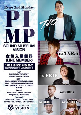 週末だけでは遊び足りないパーティピープル達で賑わう毎月第2月曜日開催の”PIMP”。毎回月曜日とは思えないほどの動員数を集め、VISION MONDAYの中でもそのエネルギーは一番であろう。