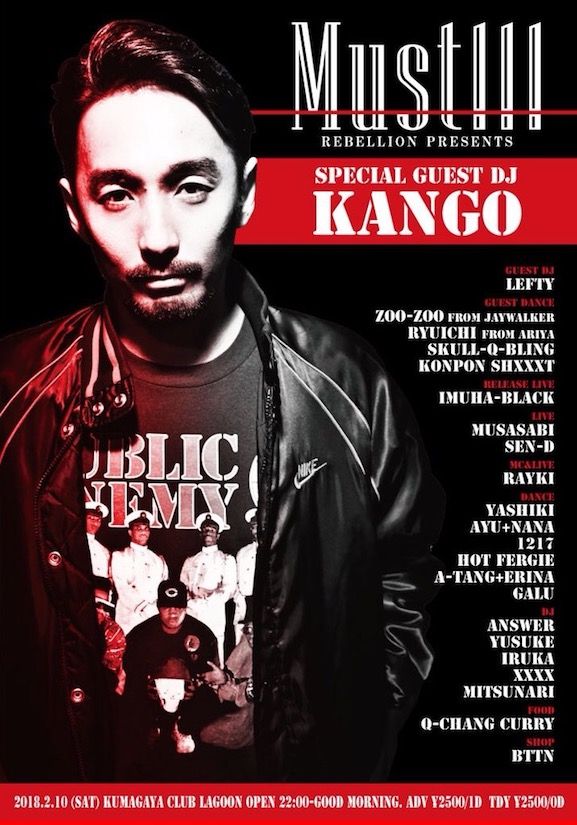 2018.02 10 FEB must!! HIPHOP R&B ALLMIX 0 Shares Facebook Twitter google Line DATE: 2018-02-10 SAT OPEN: 20:00 VENUE: PRICE: [ADV]2,500yen/1D [DOOR]2,500yen LINE UP: ■SPECIAL GUEST DJ KANGO ■GUEST DJ LEFTY ■GUEST DANCE ZOO-ZOO from jaywalker RYUICHI from ARIYA SKULL-Q-BLING KONPON SHXXXT ■RELEASE LIVE IMUHA-BLACK 【PUSH feat. king104】 https://youtu.be/uD4ZRkPBllc ■LIVE MUSASABI SEN-D ■MC&LIVE Rayki ■Dancer YASHIKI AYU+NANA 1217 HOT FERGIE A-TANG+ERINA GALU ■DJ ANSWER YUSUKE IRUKA XXXX MITSUNARI ■FOOD Q-chang curry ■SHOP BTTN 「音で盛り上がる最高のPARTY」をテーマに毎回、 オープンからラストまで良質なDJがお客様を最高PARTYに導きます。 この一夜でしか味わえない最高PARTYを、体感せよ!! LocalとGlobalを繋ぐ”MUST!!!” 2018.2.10(sat) 【MUST!!】 -Rebellion presents- ●HIP HOP, R&B, CLASSICS, DANCE MUSIC & ALL MIX PARTY!!