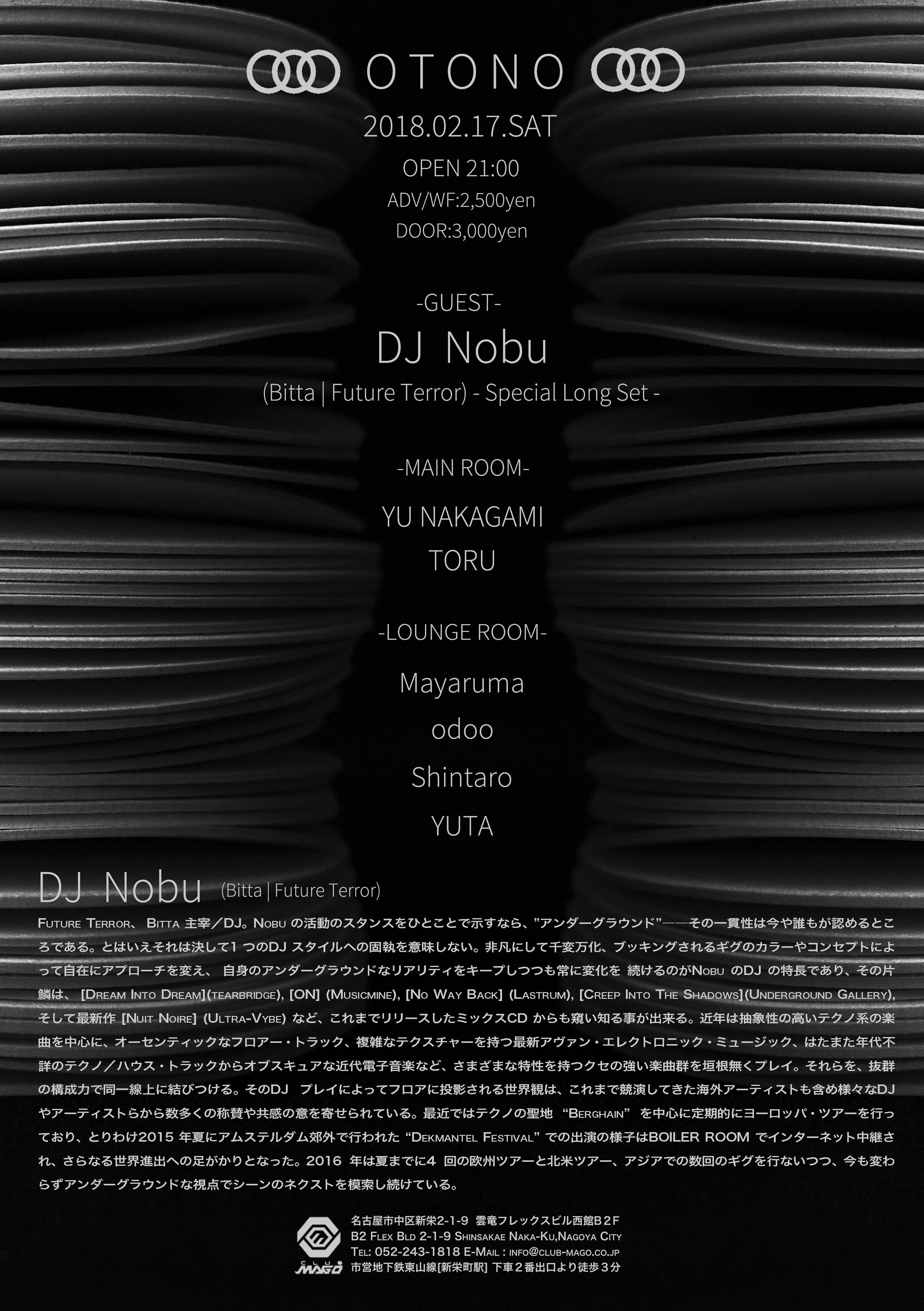 2018年最初のOTONOはDJ Nobu をSpecial Long Set で迎え開催します。