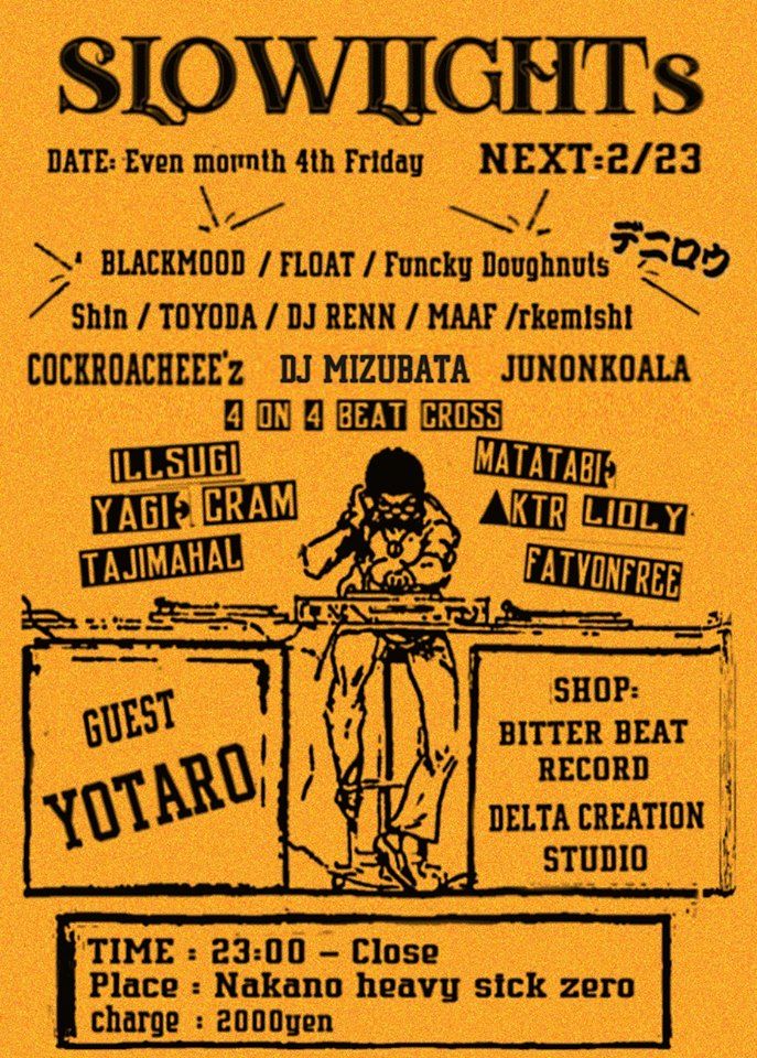 メインフロアでは新進奇抜のビートメーカー8人が二手に分かれビートクロス・セッションに挑む!ゲストライブには、関西より「YOTARO (F.P.F) 」が初登場!またリリース祝いには、ミックステープにて"The Lasting Sun of The Bay Area"をリリースした「JUNONKOALA」がライブ!