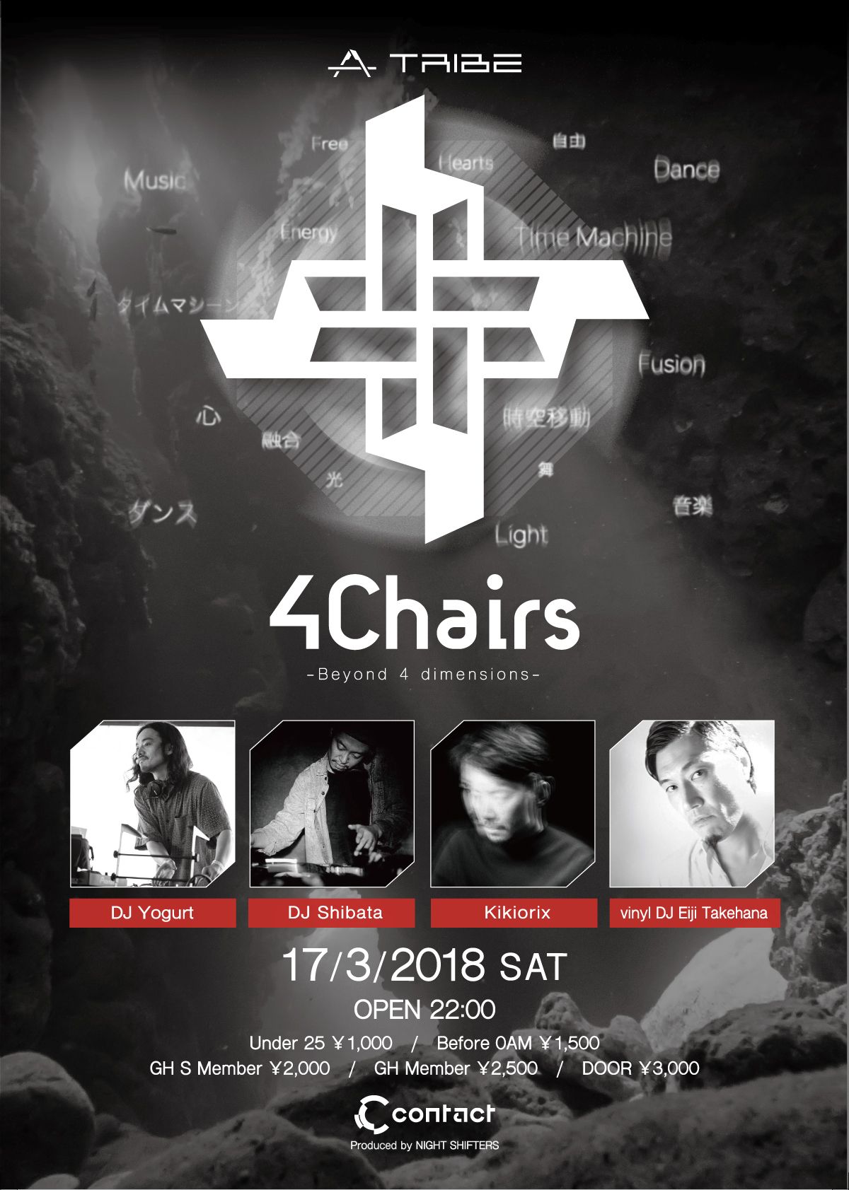 本物のクラブミュージックを愛する方々へ向けてContactが自信を持ってオススメするスペシャルパーティ”4Chairs”第3回目を開催。