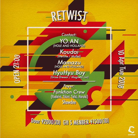 様々なバックグラウンドを持ち、都内各所で活躍するKoudai, Mamazu, Sungaの3人が主催するRETWISTの4回目が開催。ハウス、テクノを軸に三者三様それぞれの個性をクロスオーバーさせ、オープンからラストまでバランス、空気感、タイミング、今を”RETWIST”し、音楽やパーティーの本来の楽しさを存分に味わうことのできる平日ならではのひと時を演出。今回はスペシャルゲストとしてYO.ANを招聘。