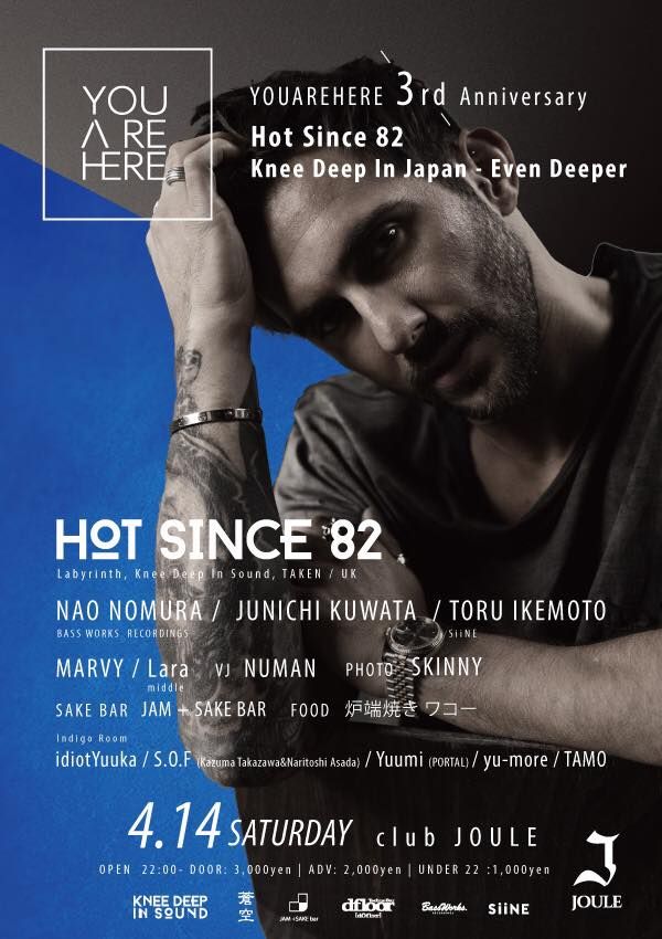 GAISER,NASTIA,DANNY DAZE、などの招聘や、HITO主催の”HITO Presents OTO”、HECTOR率いる”VATOS LOCOS”とのコラボも記憶に新しい、常に話題の人気アーティストを招聘する”YOUAREHERE”のアニバーサリーを彩るのは、Richie Hawtin、Joris Voorn、Jamie Jones、Seth TroxlerなどのトップDJたちから手厚いサポートを受け、Pacha Ibizaでのレジデントパーティーや世界的ダンスミュージックフェス『Ultra Music Festival』への多数の出演など、世界を股にかけて活躍するHOT SINCE 82!!