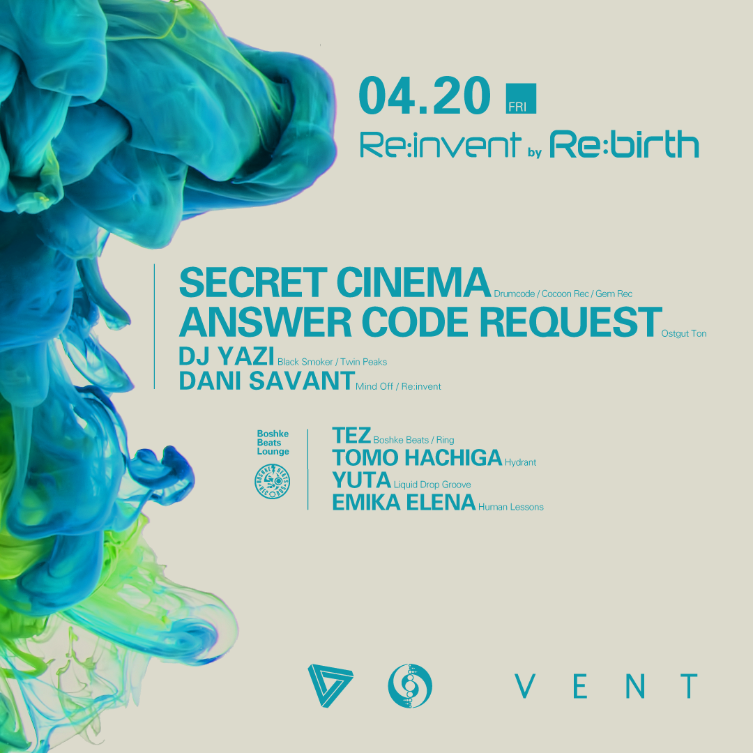 これは超強力なラインナップ!石野卓球率いるWireやSterneでの出演で日本でもおなじみ、ベテラン中のベテランにしてヨーロッパのテクノシーンを牽引してきたSecret Cinemaと、Ostgut TonやMarcel DettmannのMDRの主要アーティストにしてBerghainのレジデントを務めるAnswer Code Requestが揃って4月20日のVENTに登場!