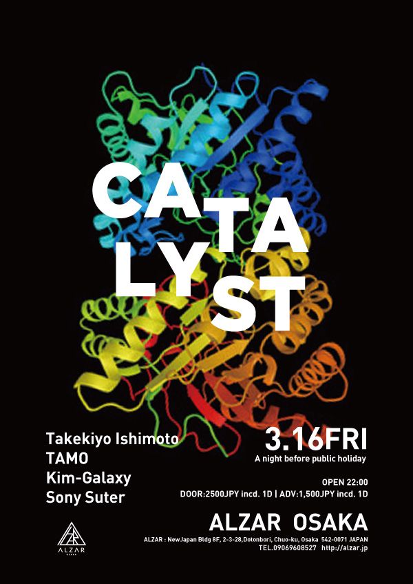 先月大盛況に終わったdiv feat. = “JEREMY OLANDER “のスピンオフイベントとして開催される"CATALYST"。Progressive Houseを軸とした、壮大なスケール感と多幸感、またアルザルが持つ無慈悲でありながらも温もりを持ったディープな世界観が織りなすケイオティック且つピースフルなミュージックジャーニーを提供する。