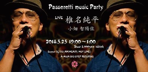 2018.03 23 MAR PASSERETTI MUSIC PARTY R&B 0 Shares Facebook Twitter google Line DATE: 2018-03-23 FRI OPEN: 19:00 VENUE: PRICE: door:¥2,000/1drink LINE UP: live : 椎名純平 / 小畑 智陽佐 DJ : IIO (ANIMEAIR / HOT LINE) / A-MU(A BIG STEP RECORDS) 開催日:2018/3/23 金曜 時間:19:00-25:00 料金:2000円/1ドリンク live 椎名純平 / 小畑 智陽佐 DJ IIO (ANIMEAIR / HOT LINE) A-MU(A BIG STEP RECORDS) お問い合わせ PASSERETTI:053-452-0899 https://www.facebook.com/cafe.passeretti/videos/1715705445127288/