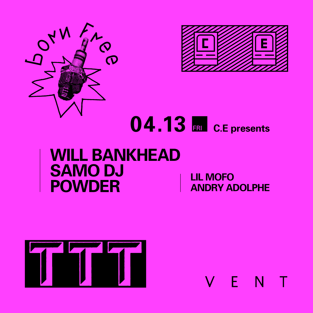 スケートシングが手がけるファッションブランドC.Eが、The Trilogy TapesのWill Bankhead、Born FreeのSamo DJを招聘しパーティを4月13日に開催。日本でのプレイはレアなPowderもラインナップ。