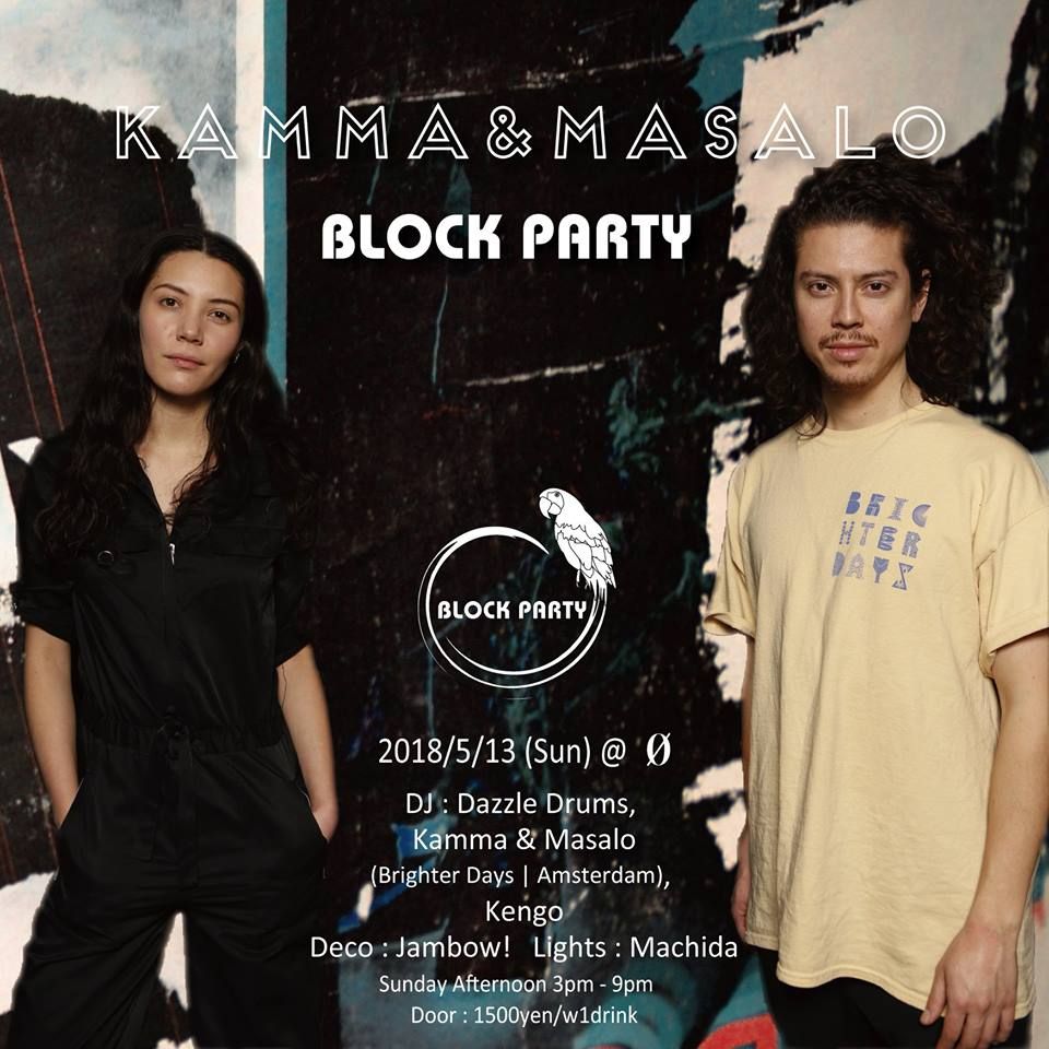 今回のBlock Partyは、アムステルダムからKammaとMasaloをお迎えして一緒にパーティします。彼らは地元アムステルダムにて"Brighter Days"というパーティを主催しています。素晴らしいパーティチームとオーディエンスがいるところでした。Block Partyで皆さんと少しでも繋がることを楽しみにしています。