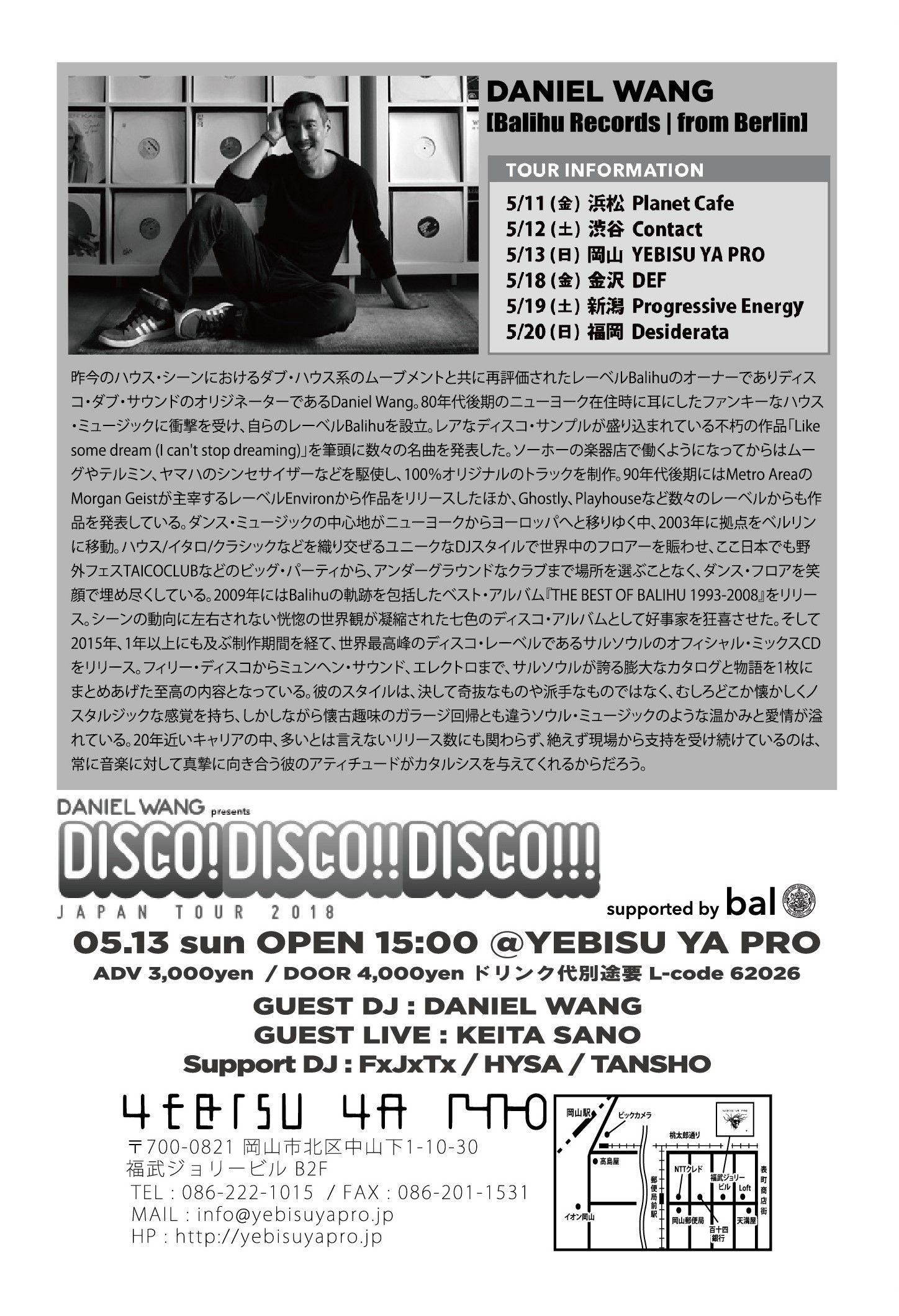 DANIEL WANG presents DISCO! DISCO!! DISCO!!! JAPAN TOUR 2018 supported by bal