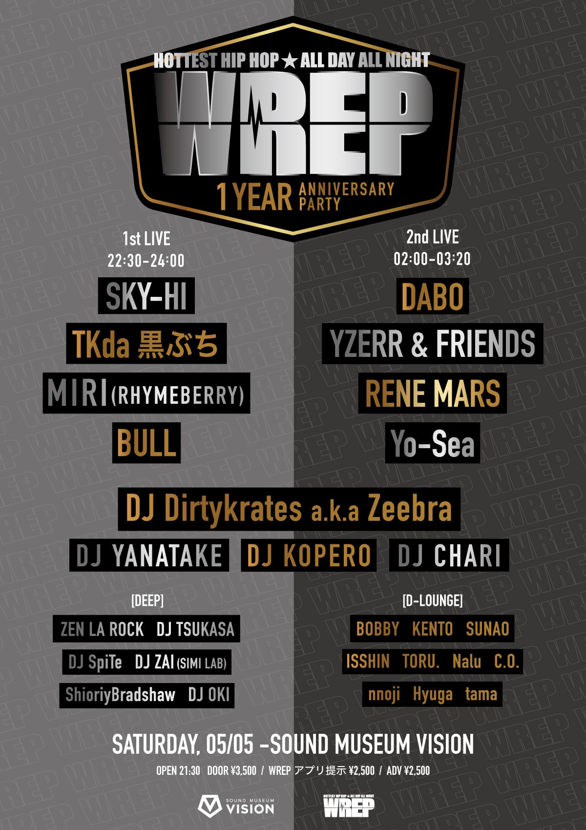 2017年4/1(土)に開局を果たした、ZEEBRAが局長務める、日本初の24 時間HIP HOP専門ラジオ局”WREP”の1周年パーティを開催!