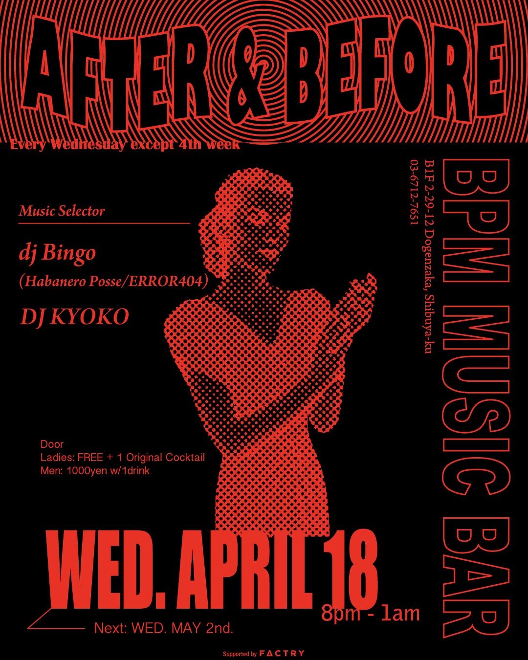 - Music Charge Ladies FREE & 1 Original Cocktail / Men's ¥1,000 & 1D