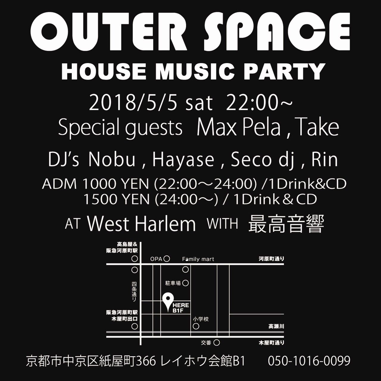 - ゲストDJには、世界各国で活躍中のDeep House/Afro House music の伝道師 MAX PELAと、大阪"Cauliflower" にて Deep House Party "Vibes" を主催する若手有望株のDJ Takeが登場。