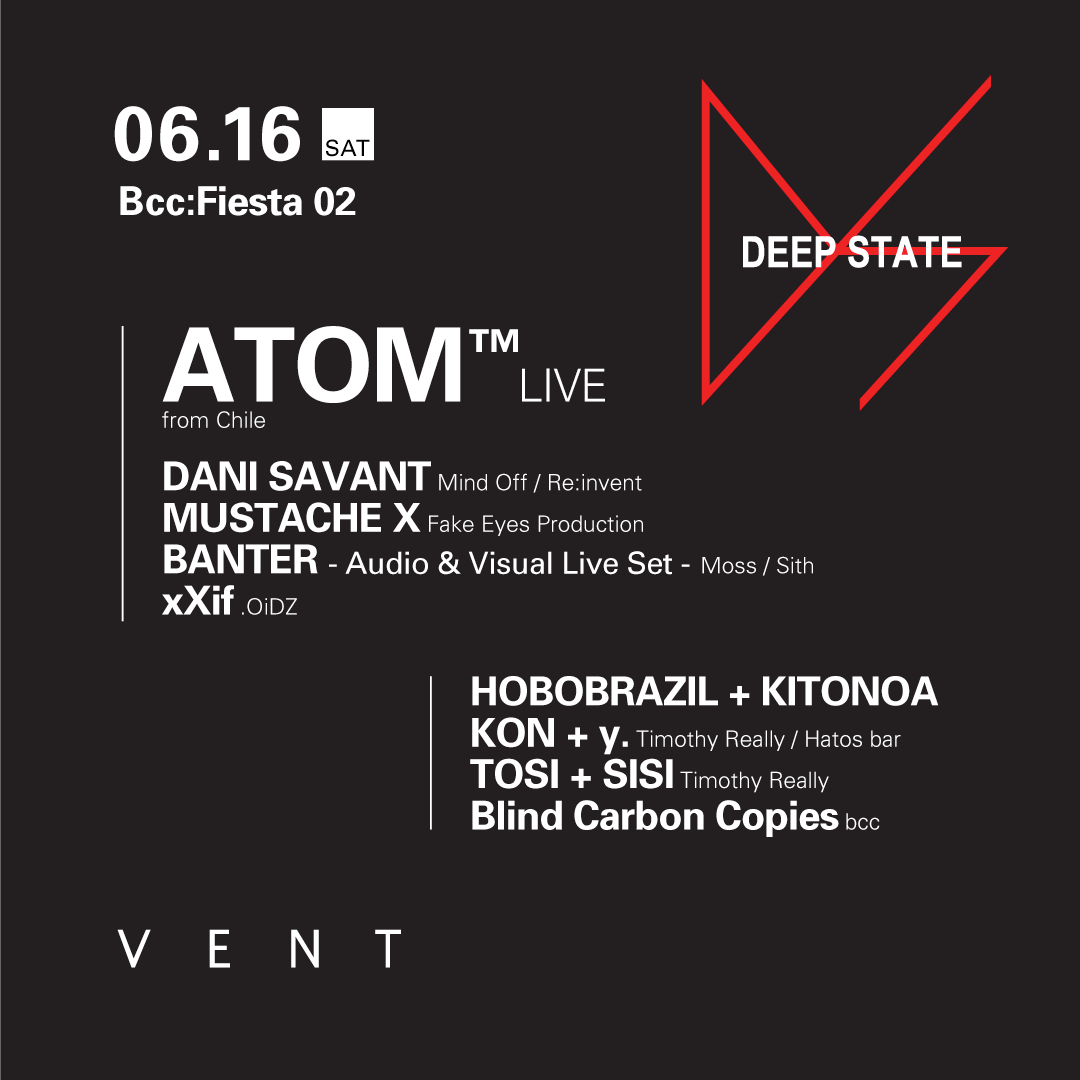 日本初!!昨年のFLANGERとしての初ライブもまだ記憶に新しいUwe Schmidtこと鬼才 ATOM HEART(アトムハート) が、6月16日のVENTにて最新のライブセット”Deep State”を披露!Atom™️、ATOM HEART、Señor Coconut、FLANGERなど多くのアーティスト名義を使い分け、エレクトロニック・ミュージック界において一際異彩を放つアーティストが、今年の5月にヨーロッパでプレミア公開するという最新ライブセットを引っさげて、過去9年間に及びAtom™️の東京公演をサポートしてきたアートの視点で音楽を楽しめる新感覚なイベント” Bcc:Fiesta “のメインアクトとして登場する。