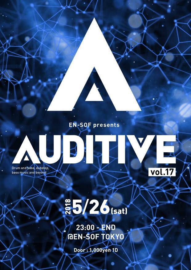 En-Sof Tokyoを拠点に多彩なベースミュージックを心地よい空間と音響でお届けするイベントAuditive。第17回目となる今回は、東京アンダーグラウンドシーンで活躍している個性豊かなドラムンベースDJ陣を招いて、多彩なバイブで一夜を飾る。