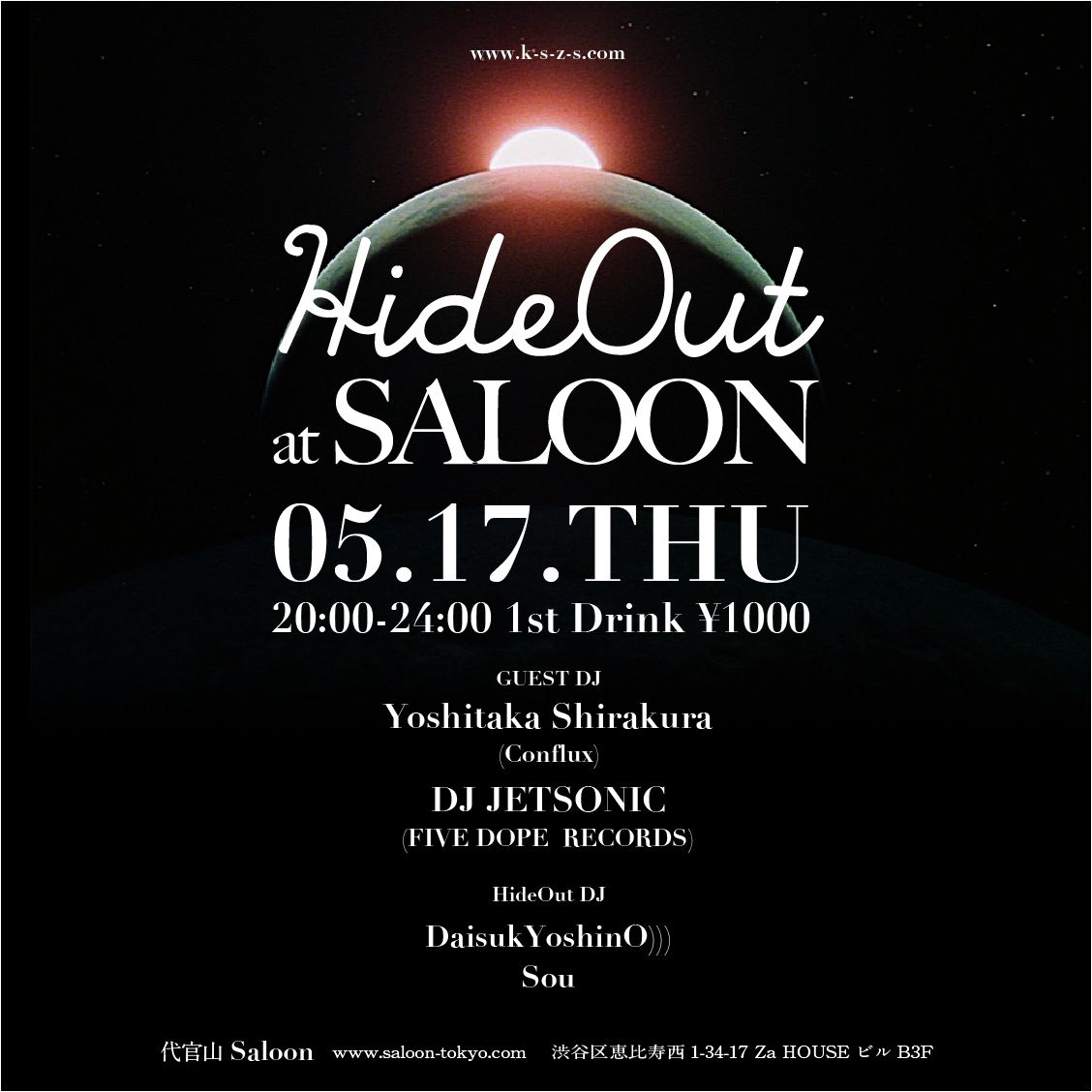 平日の代官山SaloonでHideOut レギュラーでやっていきます。