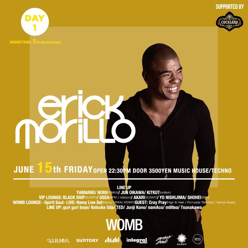 今年は2DAYS に渡り開催が決定した!DAY.1は長きに渡りハウスミュージックシーンに多大なる影響を与えた大御所 Erick Morillo のプレミアム公演が実現する。老舗レーベル Subliminal Records も近年更なる展開を見せている、彼のプレイに全世界が魅了されている中での最高のタイミングでの来日となる。