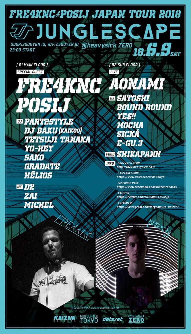 JUNGLE SCPAEにて、WORLDWIDEにBASSMUSIC SCENEで活躍中のDJ/PRODUCER、FRE4KNC & POSIJがAISA TOURをかねてTOKYOのBASSMUSIC SCENEへ来日!