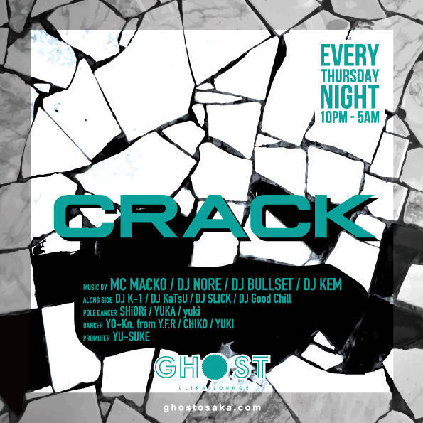 Ghost ultra loungeの毎週木曜日は最もスリリングで革新的なジャンル「Hiphop」の醍醐味を伝える「Crack」にお任せ!