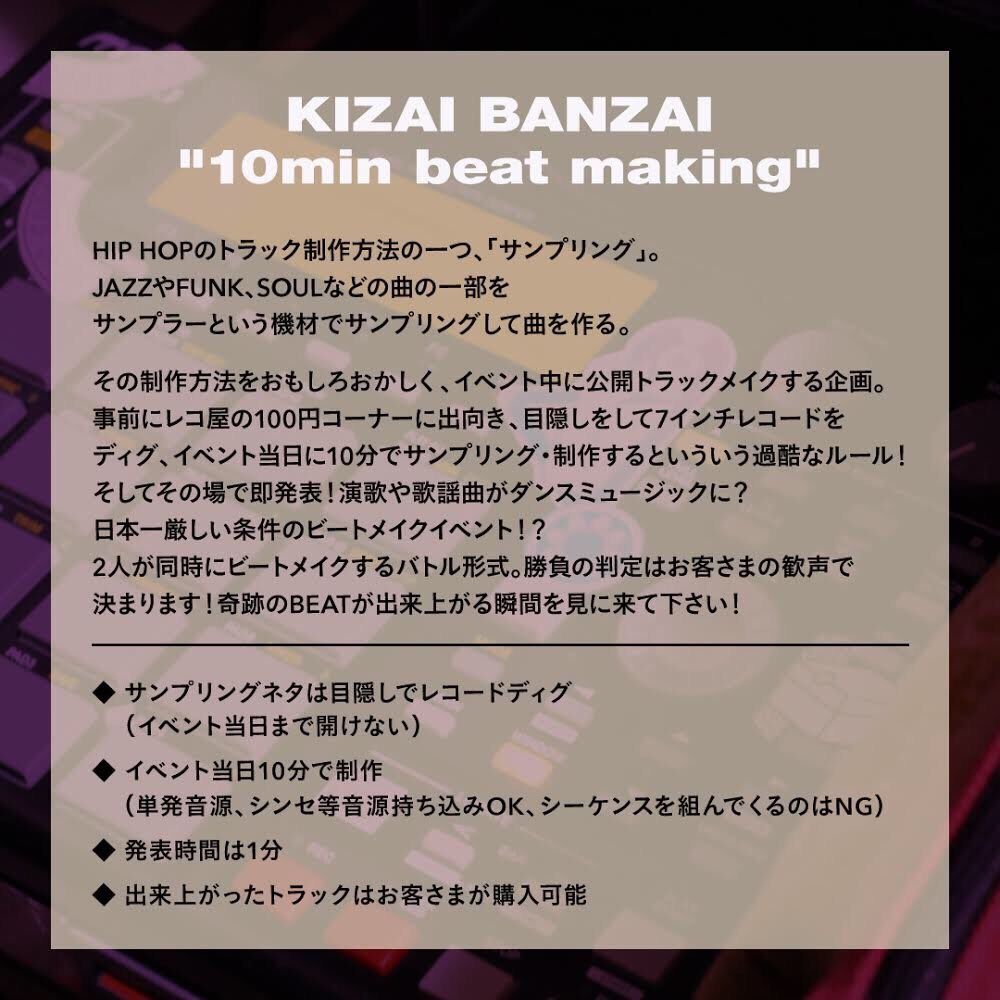 AKAIのサンプラーマシン「MPC」を始め、様々な機材や楽器を持ち込んで10分の間に即興でビートメイキングをする企画を行うなど、巷で話題になっているパーティー「機材バンザイ」。
