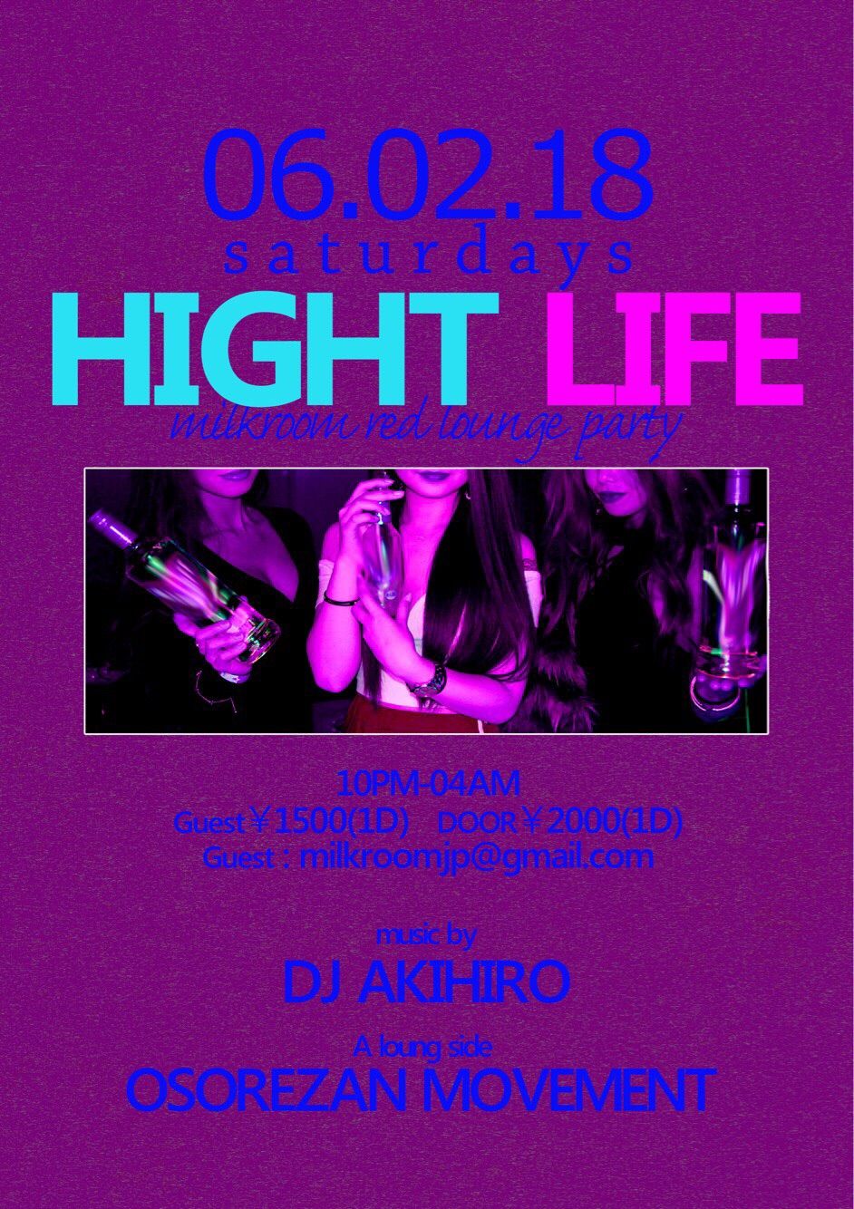 週末のNIGHT CLUBクルージングを皆さんそれぞれのスタイルで楽しめるパーティー『HIGHT LIFE』