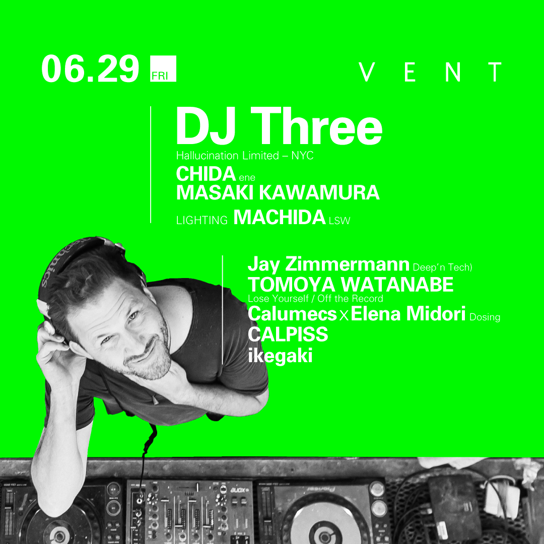 体の内側から揺さぶられるグルーヴと脳内を刺激するトリッピーなサウンドによる催眠的なミックスで、世界中に熱狂的なファンを獲得。常にオープンマインドな姿勢を持ちながらもハウスとテクノのルーツを忘れずに、まさにDJの中のDJと呼ばれる真のアンダーグラウンドヒーロー、Threeによるパフォーマンスは見逃せない!