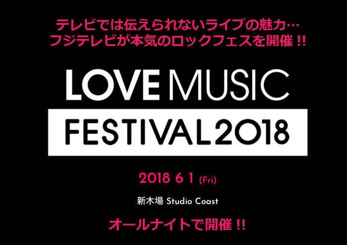 フジテレビの音楽番組"Love music"が、テレビでは伝えきれない、ライヴの感動・興奮・魅力を伝えるべく、本気のロック・フェス"LOVE MUSIC FESTIVAL 2018"を初開催!
