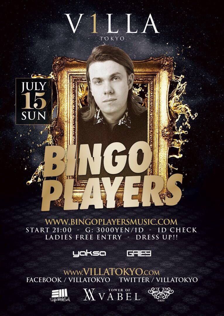 祝前日7月15日(日)オランダ出身のEDM界の重鎮であるDJ'' Bingo Players''がVILLA TOKYOに初登場!