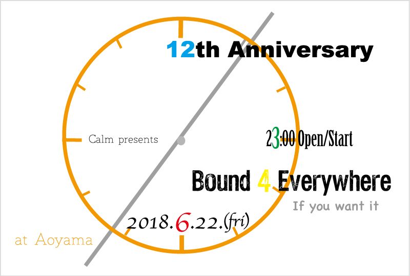B4E12周年アニバーサリーです。久々Calmオープンラストです。パーティーの基本に立ち返り、良質なダンスミュージックと共に。